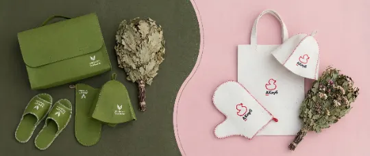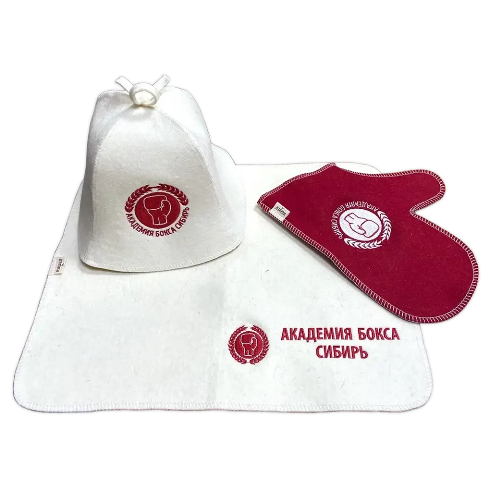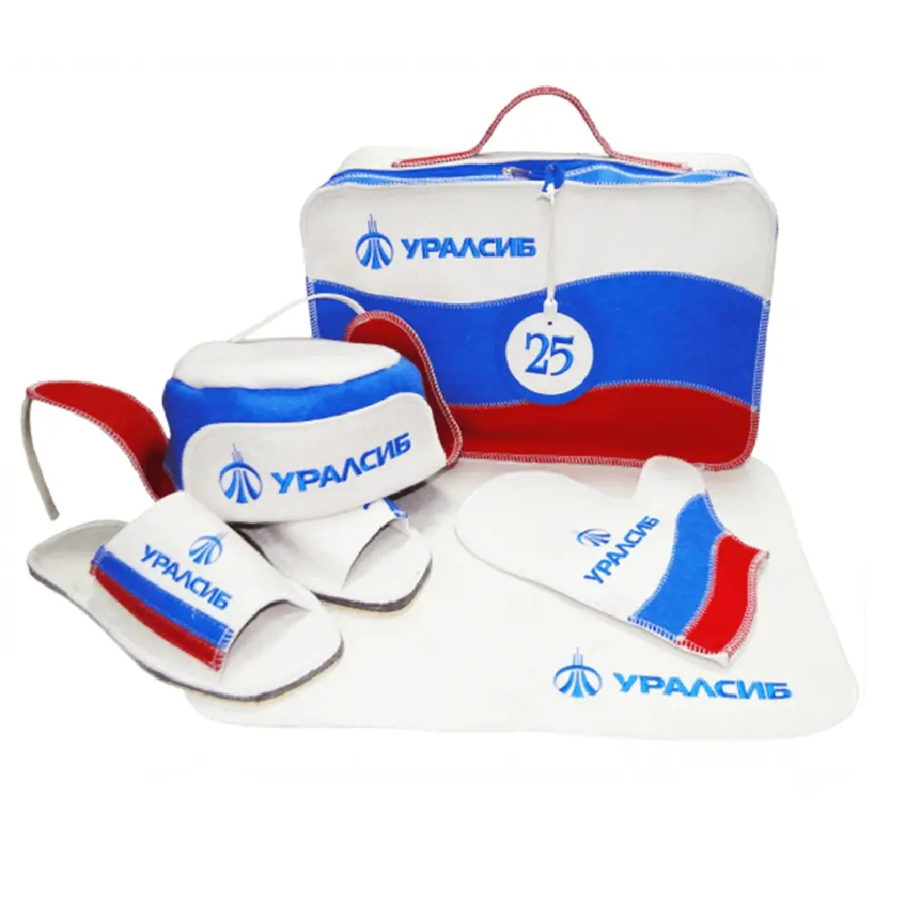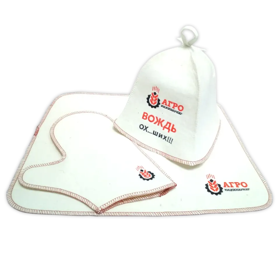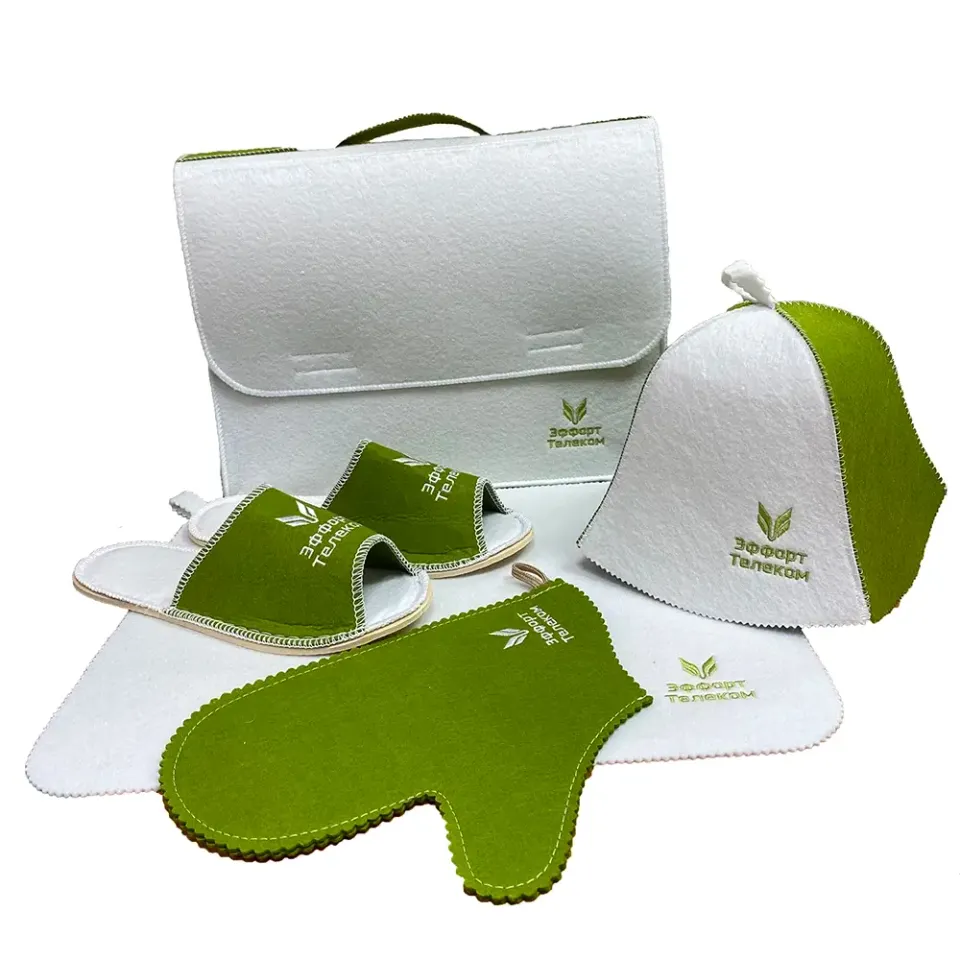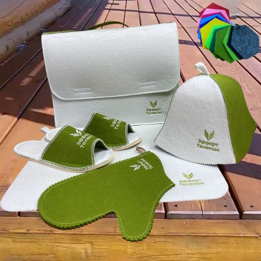Закажите подарки из войлока: банные шапки, коврики, рукавицы, тапочки, сумки и многое другое с вашим логотипом
