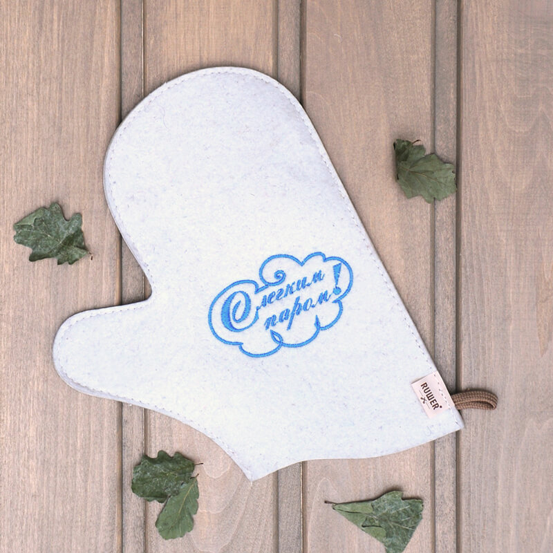 Рукавица для бани войлочная "С легким паром", необходимый аксессуар для настоящих банщиков, выполненная из натурального войлока. Защитит кожу рук от ожогов горячим ковшиком или паром. С банной рукавицей Вам больше нестрашны шершавые и горячие ручки веников!