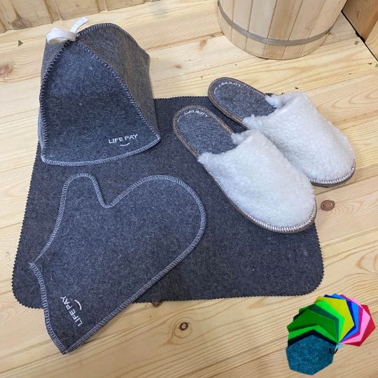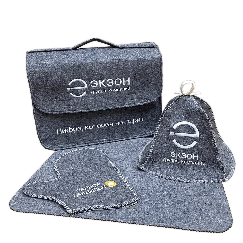 Закажите подарки из войлока: банные шапки, коврики, рукавицы, тапочки, сумки и многое другое с вашим логотипом